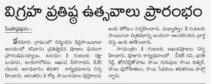 అబీనందించతగ్గ రీతి లో అంగరంగా వైభవం గా ఈ సాయి బాబా విగ్రహ ప్రతిష్ట